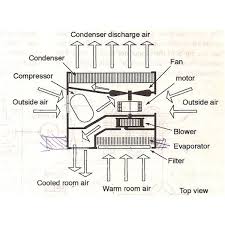In this discussion, the air conditioner condensers will transfer heat toFor heat to flow, one of the areas has to be at aThis is because heat always flows from a high intensity to a low intensity. The air conditioner condensers reject heat from the refrigeration system absorbed at the evaporator and also heat of compression from the compressor. refrigerant that must reject its heat to the outside medium (air thatTherefore, the refrigerant temperature in the condenser units must be higher than the surrounding air. take thermodynamic classes, our professor expect us to understand it . I will explain how air conditioner condensing unit work from PH charts. The condenser units receive the hot vapor refrigerant after it leaves the compressor through the short refrigeration line between the compressor and the condenser unit. This refrigerant line has known as the hot gas line or discharge line. Point 2 on the pH diagram showed the hot vapor from the compressor is forced into the top of the condenser coils.