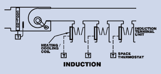 VAV dual-duct systems have the potential of being efficient and comfortable, but they often have significant opportunities for improvement. In dual-duct systems, the air handling unit has two coils, a continuously operating cooling coil and a continuously operating heating coil. The cooling coil feeds chilled air into a cold air duct. The heating coil feeds hot air into a hot air duct. The two ducts run in parallel throughout the building. At each space, air is tapped from the two ducts by a terminal unit. The terminal unit has a hot air damper and a cold air damper. When the space thermostat calls for heating, the hot air damper opens. When the thermostat calls for cooling, the cold air damper opens. Efficiency suffers if a terminal unit mixes chilled air with heated under any conditions. The system may be designed to do this deliberately under low conditioning loads to maintain a minimum air flow into the spaces. “Triple-duct” systems avoid air mixing. They are similar in appearance to dual-duct systems.
