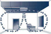 Latent load puts additional demand on cooling systems in hot-humid climates. on the air conditioner. There are three possible ways to solve the pressurized-bedroom problem. Each bedroom needs either: A return air grille ducted back to the furnace; A through-the-wall transfer grille connecting the bedroom and the adjacent hallway; A crossover duct (a jumper duct) connecting a ceiling grille in the bedroom with a ceiling grille in the hallway. The best of these three solutions is the most expensive: install a return grille ducted back to the furnace in every conditioned room of the house. Through-the-wall transfer grilles are a cheaper solution, but they have a major drawback: noise transmission. Homeowners don’t want people in the hallway to hear what goes on in the bedroom. Most contractors who bother to address the pressurized-bedroom problem install crossover ducts. As typically installed, a crossover duct connects a ceiling grille in each bedroom with a nearby ceiling grille in the hall.