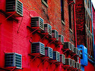 Look for the box that the ducts are attached to. It's usually made of insulated sheet metal or duct board, though it could be plywood or other materials. PTAC - Package Terminal Air Conditioner. What you see in most hotel rooms, it's the through the wall unit that contains all components of the AC in one box. Refrigerant - The working fluid that carries the heat. Most current air conditioners use either R-22, which began its phase-out in 2010, or R-410a. Before the Montreal Protocol to protect the ozone layer, most AC refrigerants were CFCs. R-22 is an HCFC, and R-410a is an HFC. Refrigeration cycle - The thermodynamic cycle that allows your air conditioner to pick up heat from inside the house and send it outside. See The Magic of Cold, Part 1 and The Magic of Cold, Part 2. Register - The type of cover you see in supply vents. It has operable louvers that allow you to control the air flow. Occasionally you'll see a register on a return vent. Usually this happens when the return and supply vents are the same size, and a homeowner pulled them out to paint and then put them back in the wrong places.