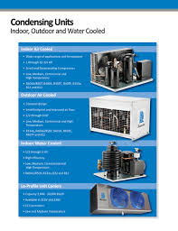 Most of the refrigerant is now stored in the condenser and receiver. A crank case heater will prevent the small amount of vapor that’s left from condensing in the compressor oil. When the room thermostat calls for cooling again, the solenoid valve energizes allowing refrigerant to flow to the TXV. As the suction pressure rises the low pressure switch closes and starts the compressor. If a defrost timer or pump down switch is utilized on the system they should be wired in series with the thermostat so that the system will only shut off after pumping down. The solenoid coil, defrost timer and room thermostat can be powered from the evaporator so no electrical between the indoor and outdoor units may be required. Multiple evaporators can be connected to one condensing unit. All of the evaporators may operate off one solenoid valve or each evaporator may have its own solenoid valve and thermostat. Commercial Refrigeration Condensing Units The Tecumseh DifferenceWhile all condensing units are an assembly of a compressor, condenser, fan motor, controls and a mounting plate, not all are created equal.