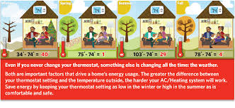 The same thing happens during hot summer days. Your AC system will work as hard as it can to lower your home’s temperature. Once it reaches your thermostat setting, your system will cycle to maintain it. This is an important area and the first one to pay close attention to, as it contributes up to fifty (50) percent of the typical home's monthly bill. Q: What is the most energy-efficient thermostat setting? A: GVEC recommends setting your thermostat at 68 degrees in winter and 78 degrees in summer. If this is uncomfortable for you, try lowering (or raising) the thermostat one degree at a time until you become accustomed to the setting. For every degree you raise your thermostat in summer or lower it in winter, you can expect to save about four to six percent on your heating and cooling costs. This can be impactful since nearly 50 percent of the typical home's energy bill is due to heating and cooling. Remember, the bigger the difference between the outside temperature and your thermostat setting, the harder your AC/Heating unit will have to work to close that difference.