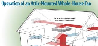 Well, warm air rises and cool air falls. For this reason a duct system that is designed and balanced to evenly heat can not also evenly cool well. -Lastly, the fact that our system uses significantly less energy and saves them money is just a great bonus, even if saving money may have been the original reason for having us install their QuietCool system. Run it all night at a cost of just 15 to 65 cents at current rates. Where as a 5000 BTU window or room AC unit that cools maybe 150 sq/ft costs .95 cents and is just recirculating the same stale air! (see AC comparison chart) In fact California, the country’s most progressive state in pioneering green energy standards, now requires whole house fans in all new homes in nearly half of all it’s geographic regions! California enacted this (As part of Title 24) because it recognized how well and efficiently whole house fans cool homes relative to air conditioning and that this rule would dramatically reduce the state’s energy demand and carbon footprint.
