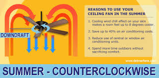 If you do not feel air movement, the fan is spinning clockwise. Cooling comfort is just a small benefit of using a ceiling fan in the summer. Homeowners who use ceiling fans during the summer can save as much as 40 percent on air conditioning bills. Don't confine your comfort to the indoors. If you enjoy spending a sunny summer afternoon outside, choose an outdoor ceiling fan for your patio, porch, or favorite outdoor spot. An outdoor fan not only helps you keep cool, but it also keeps insects and other unwanted pests at bay. See Del Mar Fans & Lighting’s selection of UL approved outdoor ceiling fans. In the winter, ceiling fans should rotate clockwise at a low speed to pull cool air up. The gentle updraft pushes warm air, which naturally rises to the ceiling, down along the walls and back the floor. This makes a room feel warmer, which allows you to lower the thermostat temperature and decrease the use of heating devices. Homeowners who use ceiling fans during the winter can save as much as 15 percent on heating bills.